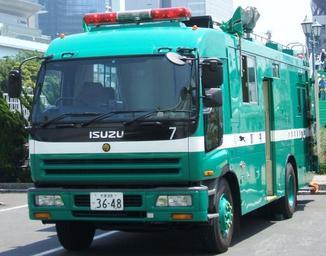 Keywords: Suinankyujosha.jpg 警視庁水難救助訓練にて撮影 own Photo by me 2007-05-04 Ypy31 Isuzu Giga Isuzu police automobiles Trucks of the Tokyo Metropolitan Police Department Green and white police vehicles