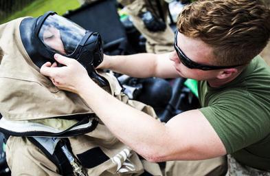 | Keywords: Suit Up (9132922251).jpg Lance Cpl Dylan Shuler 22nd Marine Expeditionary Unit chemical biological radiological and nuclear defense specialist and native of Bell Buckle Tenn helps Lance Cpl Jarrod Roper 22nd MEU CBRN specialist and native of Villa Rica Ga don his level B protective suit as the Marines prepare to search a subway for casualties and an unknown chemical or biological agent during hazardous material response training at the Guardian Centers in Perry Ga June 21 2013 Split among a reconnaissance and sampling team the Marines searched for casualties marking them with glow sticks for later rescue located the chemical agent responsible for the simulated incident and sampled it to determine what it was and how to best eliminate the threat and treat the casualties Eleven CBRN Marines attended the weeklong course which was custom-tailored to the needs of the 22nd MEU and followed the CBRN Marines š EUR TM technical rescue training at the end of May U S Marine Corps photo by Sgt Austin Hazard/Released Read more http //www dvidshub net/news/109170/22nd-meu-cbrn-completes-advanced-realistic-hazmat-training UcmKtOBLcQQ www dvidshub net/news/109170/22nd-meu-cbrn-completes-adva https //www flickr com/photos/marine_corps/9132922251/ Suit Up 2013-06-20 18 52 https //www flickr com/people/40927340 N03 Marines from Arlington VA United States PD-USGov United States Marine Corps Official Page https //flickr com/photos/40927340 N03/9132922251 2016-09-03 22 33 35 United States Government Work 22nd Marine Expeditionary Unit Hazardous materials Nuclear physics |