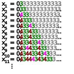 | Keywords: SuiteSpecker.svg du source XML suite de Specker Le chiffre numéro n de x<sub>n+k</sub> est 4 si le calcul de n n càd l'action sur n de la machine de Turing numéro n est terminé après k étapes; sinon 3 2008-07-10 own assumed Fool~commonswiki SVG mathematics Real numbers Cardinality |
