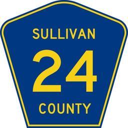 | Keywords: Sullivan County 24.svg 450 mm by 450 mm 18 in by 18 in county shield made to the specifications of the 2004 edition of Standard Highway Signs sign M1-6 Uses the Roadgeek 2005 fonts United States law does not permit the copyrighting of typeface designs and the fonts are meant to be copies of a U S Government-produced work anyway Own 2009-06-27 Carpetmaster101 Own work all rights released Public domain Diagrams of county route markers with county name 0024 24 number | ||||