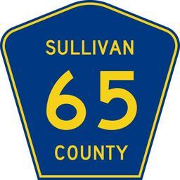 | Keywords: Sullivan County 65.svg 450 mm by 450 mm 18 in by 18 in county shield made to the specifications of the 2004 edition of Standard Highway Signs sign M1-6 Uses the Roadgeek 2005 fonts United States law does not permit the copyrighting of typeface designs and the fonts are meant to be copies of a U S Government-produced work anyway Own 2009-06-27 Carpetmaster101 Own work all rights released Public domain Diagrams of county route markers with county name 0065 65 number | ||||