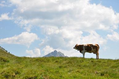 Keywords: summer cow mountain countryside outdoor nature grass meadow animal