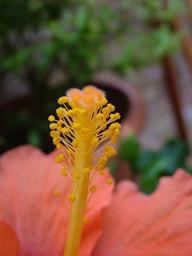 Keywords: summer flower blossom bloom hibiscus stamens red orange