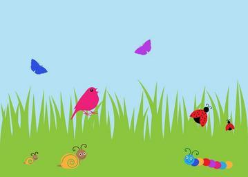 Keywords: summer garden bird ladybug snail snails caterpillar butterfly butterflies green grass blue sky colorful fun art