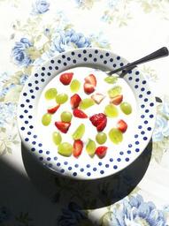 Keywords: summer garden sunshine polka dot plate green red strawberry sour milk spoon canvas