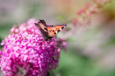 Keywords: summer lilac summer lilac blossom bloom pink pink flower nature wild life butterfly edelfalter garden in the garden flower garden garden plant insect flight insect animal landed arrived little fox aglais urticae close