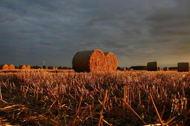 Keywords: summer straw field sunset landscape autumn farm agriculture sky red sunrise land corn season bread organic strohballen