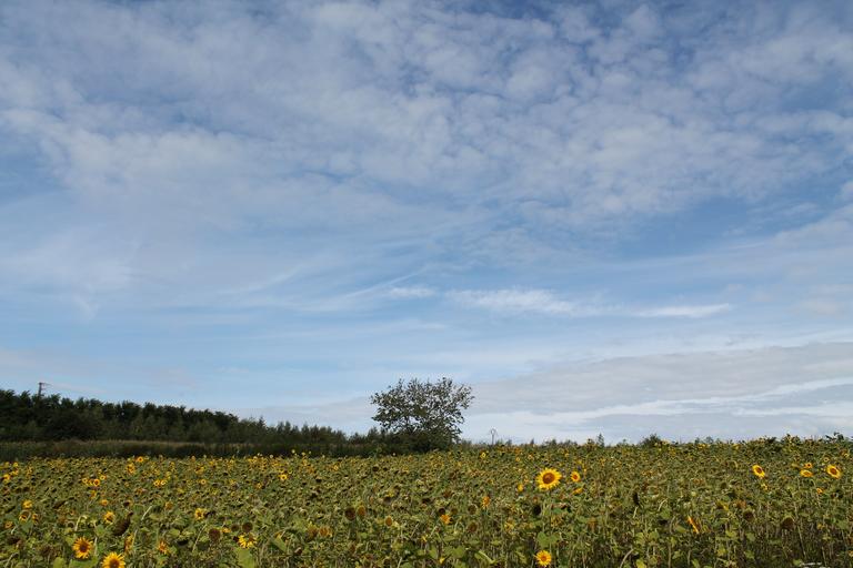 Keywords: summer tree clouds landscape sky nature green field rural sun sunflower blue sunshine land france holiday hell heat in the free