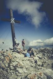 Keywords: summit cross summit alpine mountaineering mountains sky viewpoint distant view blue panorama mountaineer alpine peaks break mood nice weather wanderer climber hike