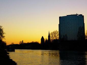Keywords: sun down speed evening twilight danube river water ulm mood münster city