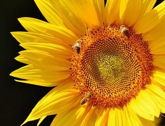 Keywords: sun flower bees summer garden blossom bloom yellow insect helianthus nature pollination close pollen macro sunny sun plant helianthus annuus flower seeds