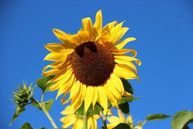 Keywords: sun flower blossom bloom flower plant yellow blue nature colorful color helianthus annuus helianthus composites asteraceae