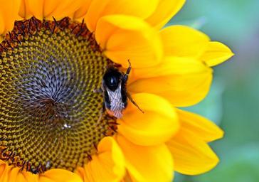 Keywords: sun flower blossom bloom hummel close yellow nature summer
