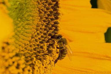 Keywords: sun flower blossom bloom summer yellow bee close macro nature pollen sprinkle nectar