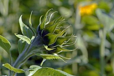 Keywords: sun flower bud summer flower plant nature yellow garden summer flower green leaves