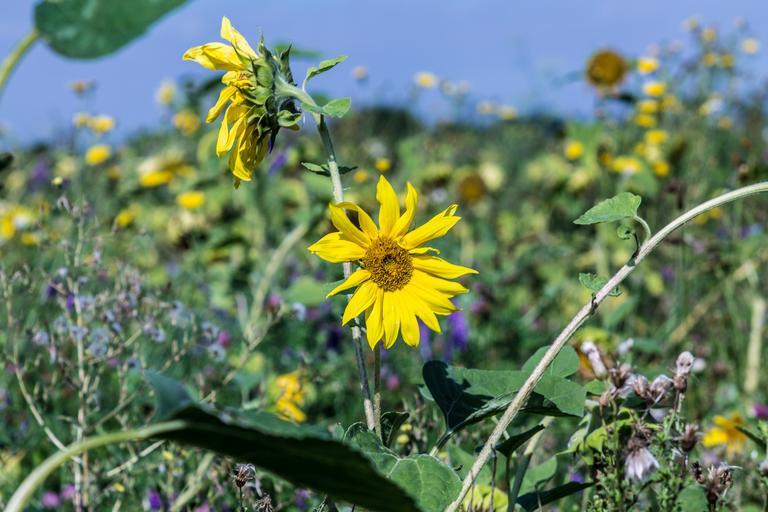 Keywords: sun flower field flower meadow nature sky green yellow flowers