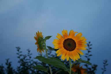 Keywords: sun flower mood yellow blue sky summer abendstimmung flower garden nature blossom bloom