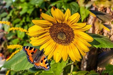Keywords: sun flower raindrop butterfly close blossom bloom