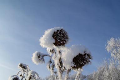 Keywords: sun flower withered frozen plant cold snow winter freeze frost nature iced icy ice sky blue hoarfrost