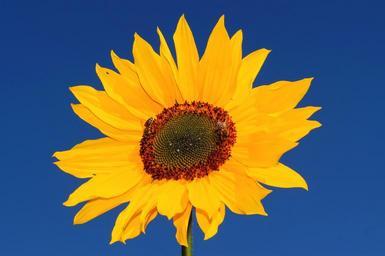 Keywords: sun flower yellow flower blossom bloom summer plant nature close bee flora yellow flower bright sky