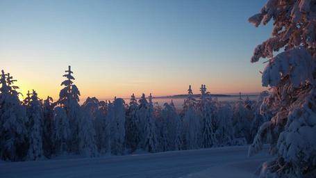 Keywords: sun frost winter winter landscape finnish frosty landscape sky frost on the trees nature horizon danger kuusamo
