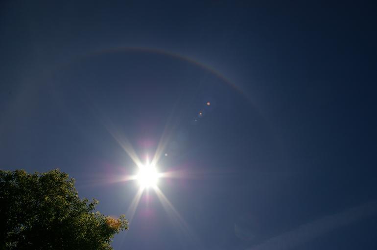 Keywords: sun halo rainbow blue sunny day beautiful circle bright star sunbeams beams light