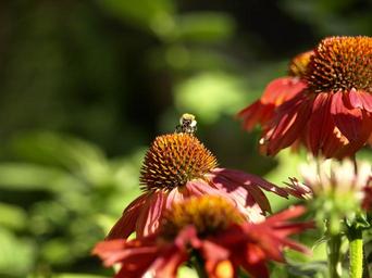 Keywords: sun hat bee flower red sprinkle nature insect macro close plant blossom bloom green garden flora flowers summer pollen enlarge view bees