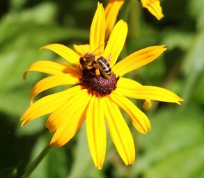 Keywords: sun hat bee nectar flower blossom bloom yellow brown close