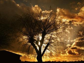 Keywords: sun lake setting sunset water mirroring atmosphere mood evening grass grasses reed tree blatter bush trees bushes hedge autumn sky nature fog outback shrubs forest
