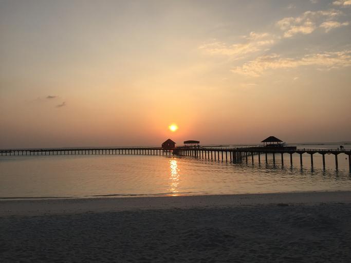 Keywords: sun maldives holiday sunset pier horizon evening twilight