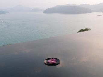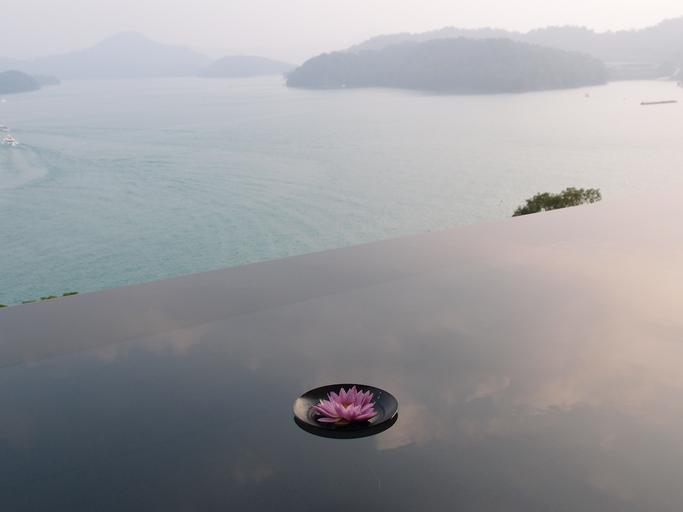 Keywords: sun moon lake reflection pond flower yuchi township taiwan still life