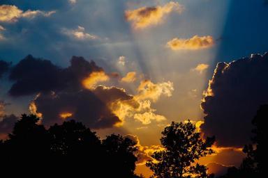 Keywords: sun rays sunset dusk clouds sky silhouette shadow nature trees