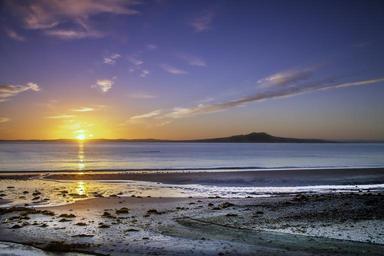 Keywords: sun rise beach new zealand auckland murrays bay
