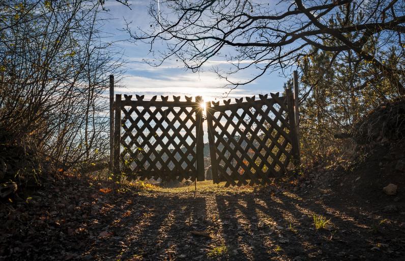 Keywords: sun sunbeam sunset nature light forest sky clouds light effect mood abendstimmung lane rays lichtspiel back light hdr landscape fence goal hdr image wooden gate