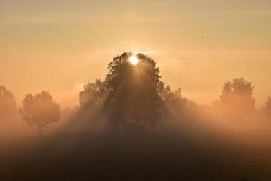 Keywords: sun sunrise morgenrot fog mysthisch beautiful romantic red light back light tree