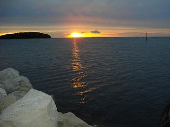 Keywords: sun sunset croatia afterglow beach water sea adriatic sea stones rock coast