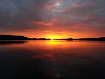 Keywords: sun sunset lake afterglow rays sunbeam evening sun nature morning mood sky skies island water swim summer