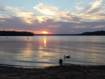 Keywords: sundown clouds lake reflection