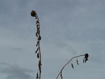 Keywords: sunflower dry stranded tramples over stalk trist barren sad