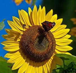Keywords: sunflower flower butterfly painted peacock bee osa insects heat work the petals yellow summer sunny garden boost full clear pollination invasion nectar pollen