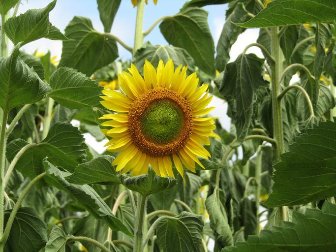 Keywords: sunflower flower plant nature field of sunflowers yellow