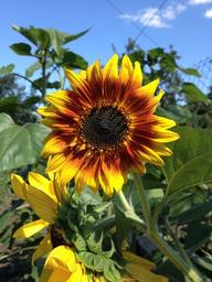 Keywords: sunflower plant summer green flower nature flowers leaves lovely garden flower bed bright sheet greens beautiful flower vegetable garden grass orange garden flower summer flowers green leaves closeup beautiful