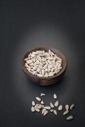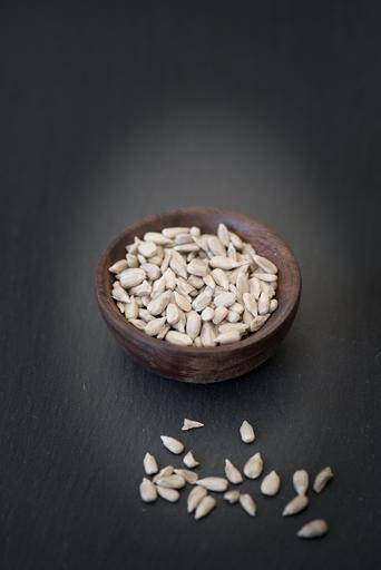Keywords: sunflower seeds cores shelled sunflower seeds natural product snack food healthy eat vitamins minerals close text freedom edible nutrition bowls holzschüsselchen