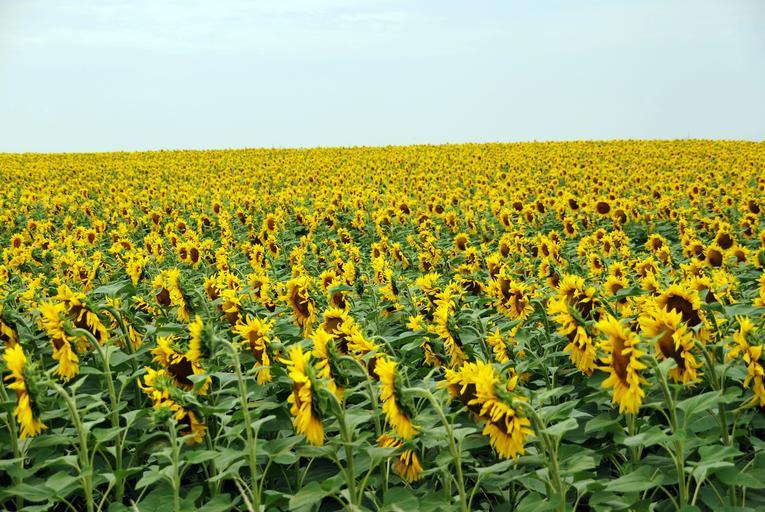 Keywords: sunflowers field yellow summer blue sky nature agriculture flower green sun plant landscape blossom rural growth bright outdoor country natural sunny floral season blooming countryside botanical botany sunlight