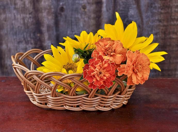 Keywords: sunflowers flowers basket yellow floral natural blooming petals sunflower plant bloom fresh spring petal
