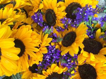 Keywords: sunflowers yellow flower nature summer blooming joy color