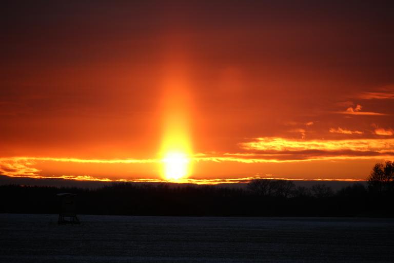 Keywords: sunpillar weather phenomenon wintry sunbeam winter snow afterglow sunset