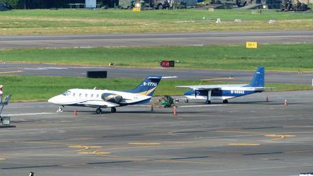 | View Original: | Sunrise Airlines Raytheon Hawker 400XP B-77701 and Roc Aviation Britten Norman BN-2B-20 Islander B-68802 Parked at Taipei Songsham Airport 20160821.jpg (4000x2248) | |||