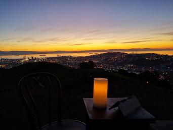 Keywords: sunrise bay water blue scenic san francisco bay table for two not reserved