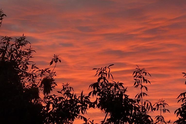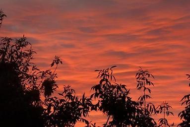 Keywords: sunrise clouds dawn branches tree shadows scenery summer contrast red roses streaks